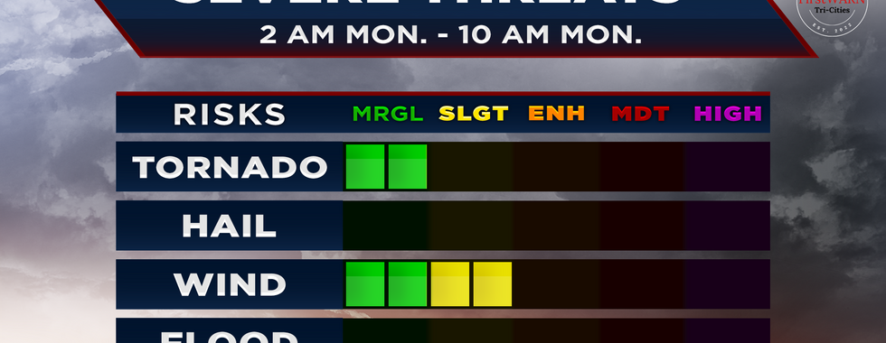 Severe Thunderstorm Risk (2 AM – 10 AM Monday):