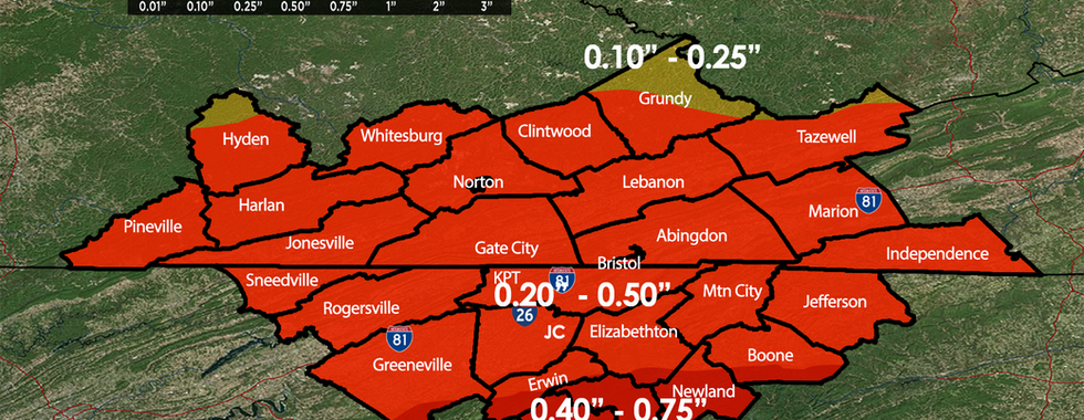 •Higher amounts possible in Western North Carolina